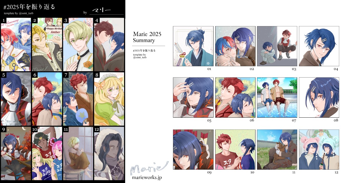 2025.12.292025年お絵描きまとめのまとめ。今年は毎月描いた絵をまとめていたので、1月から12月までのまとめのまとめ+最後に毎月1枚ピックアップした絵のまとめを載せています。 1月 2月 …