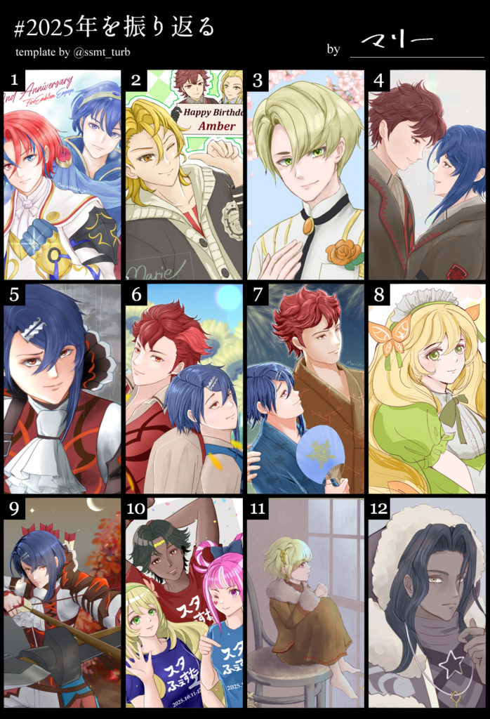 2025年お絵描きまとめのまとめ。今年は毎月描いた絵をまとめていたので、1月から12月までのまとめのまとめ+最後に毎月1枚ピックアップした絵のまとめを載せています。